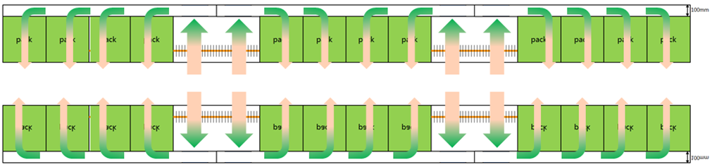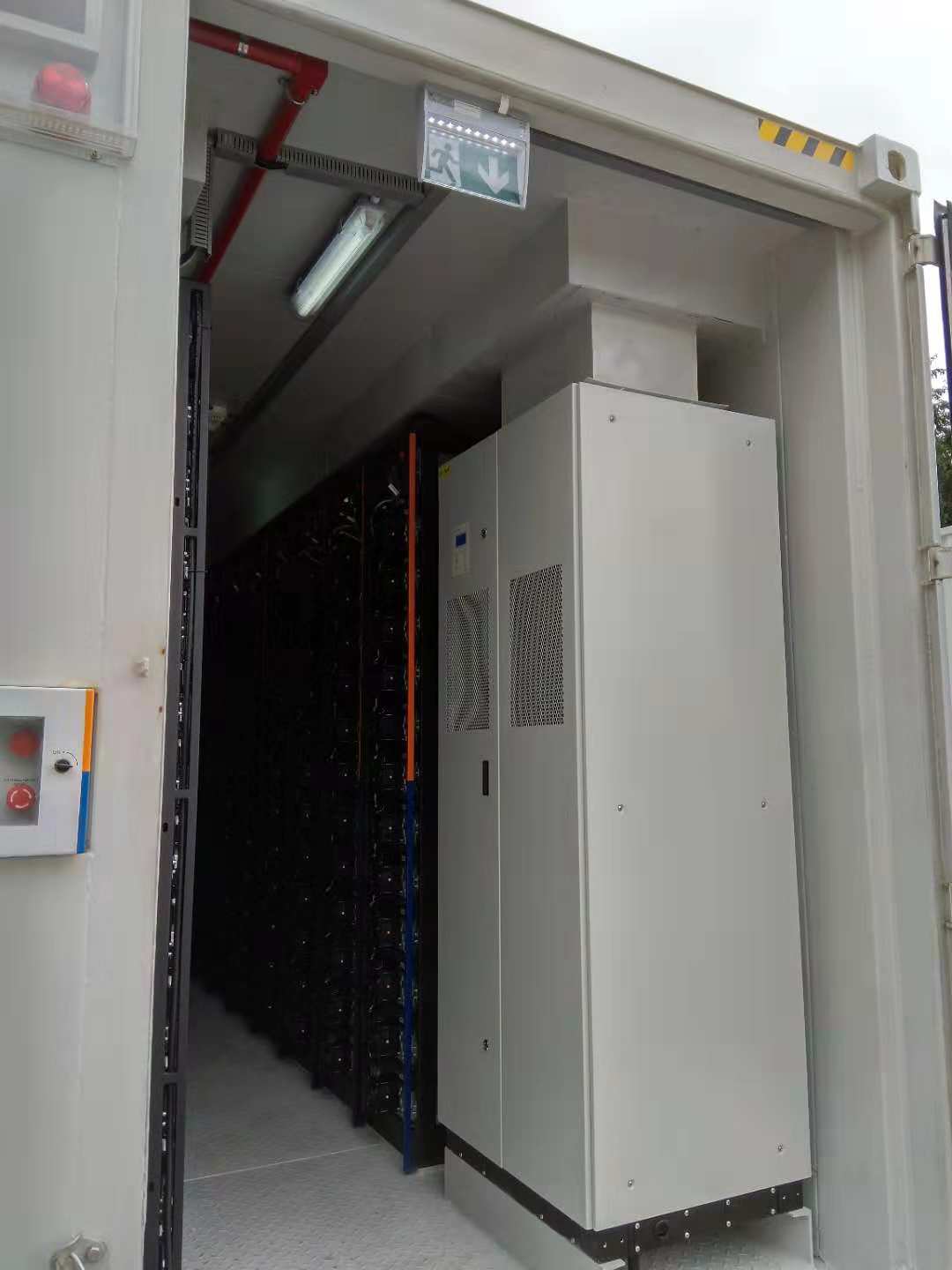 (1)某公司向海外提供2MW的40呎儲能集裝箱,考慮到安裝和防盜的需求,在每個使用了4臺12.5KW的一體化空調,空調安裝在集裝箱內四個角,頂部出風,與集裝箱內部的風道相連接,直接對電池組進行精確送風。同時通過開放空調通訊協議,用電池組的溫度控制空調啟停,實現高效節能的空調運行方案。