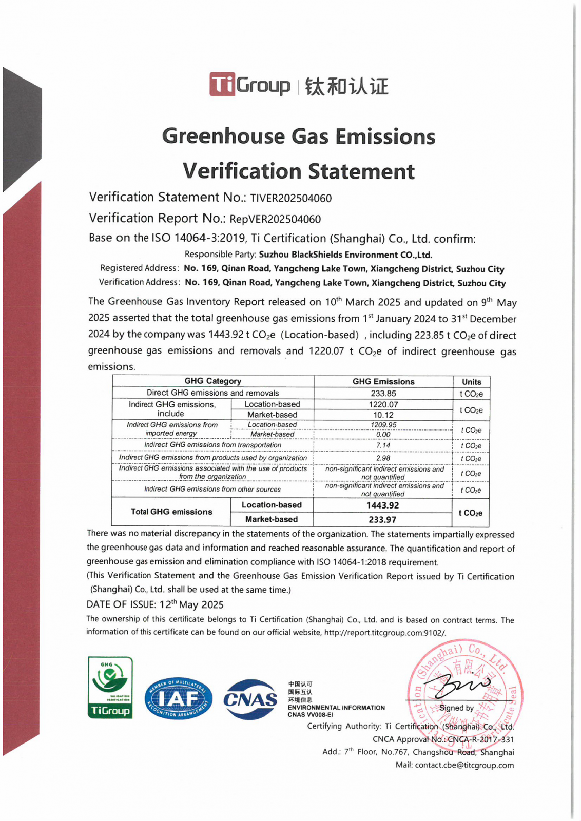 2025年溫室氣體(碳核查)證書