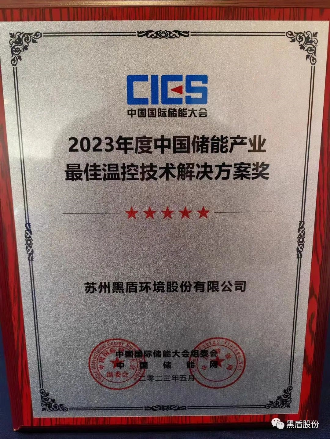 在5月24日的頒獎晚宴中,黑盾股份再獲殊榮,被授予2023中國儲能產業最佳溫控技術解決方案獎,這也是儲能大會對黑盾股份提供的溫控產品的肯定。
