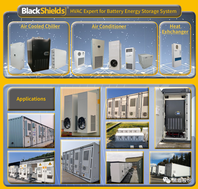 BlackShields creates various ranges of Climate control products for Battery Energy Storage Systems, which includes Air-cooled chillers, Air conditioners, and Heat exchangers, etc. These products are designed to meet specific needs like PCS/battery temperature control and installation space. The products are designed with multiple installation methods, large airflow, and intelligent controls to offer a safe, reliable, high-efficiency, and energy-saving precision temperature control solution for energy storage systems.