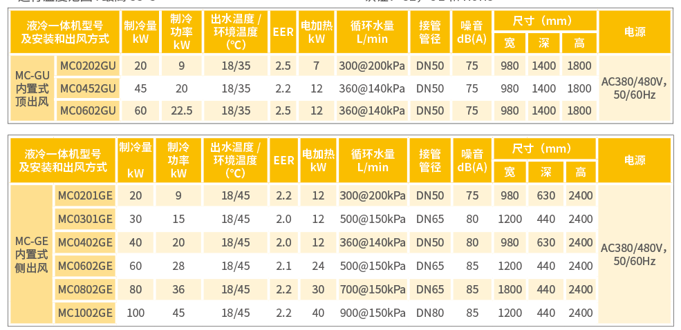 – MC-GE系列為冷凝側可實現側面進風,側面出風;